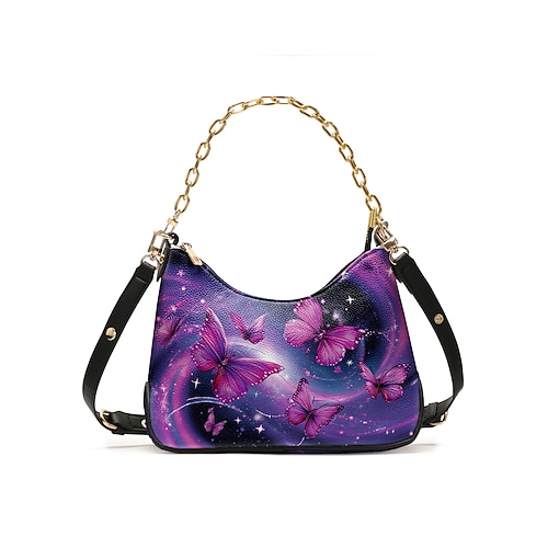 borsa a tracolla da donna in similpelle con tracolla regolabile, motivo a farfalla, opzioni multicolore, stili di trasporto versatili per occasioni casual e formali