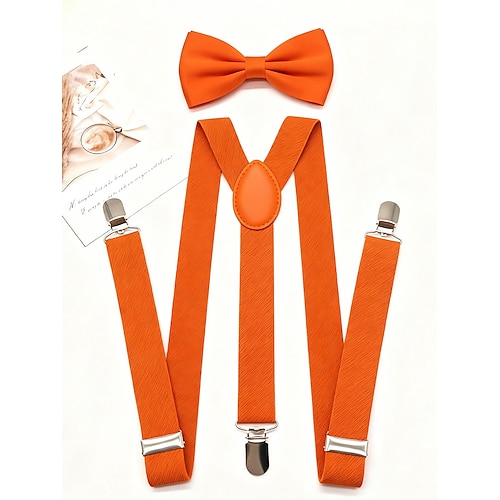 set di bretelle e papillon in poliestere da uomo, vari colori, perfetti per Natale e eventi formali