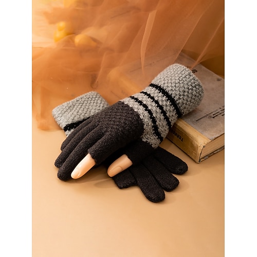 Guanti da uomo in maglia di poliestere per touchscreen: design a due dita, disponibili in più colori, perfetti per l'inverno e le attività all'aperto