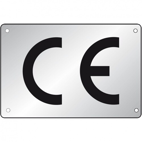 Schild I CE-Zeichen, rechteckig, silber/schwarz, Aluminium, eloxiert, 75x50mm, 100/VE