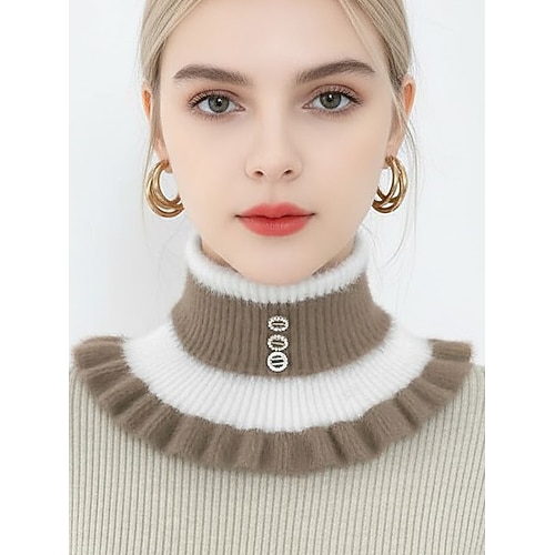 colletto natalizio in maglia pelosa da donna: morbido e accogliente misto lana con motivo a balze, disponibile in più colori, perfetto per l'inverno e le feste