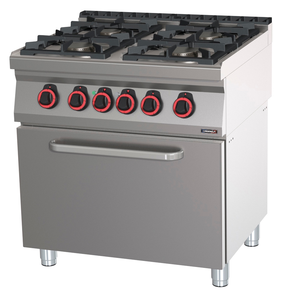 Gasherd mit 4 Kochstellen und statischem Elektrobackofen GN 2/1 80 - Linie 700 C7FOG4FFS80 Casselin