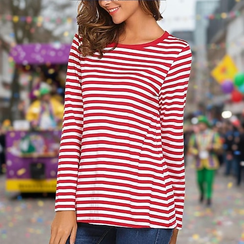 Costume di Carnevale 2026 Carnevale T-shirt Felpa Bianco e Rosso A strisce Adulti Per donna Carnevale Feste Performance Costume di Carnevale facile Vestirsi