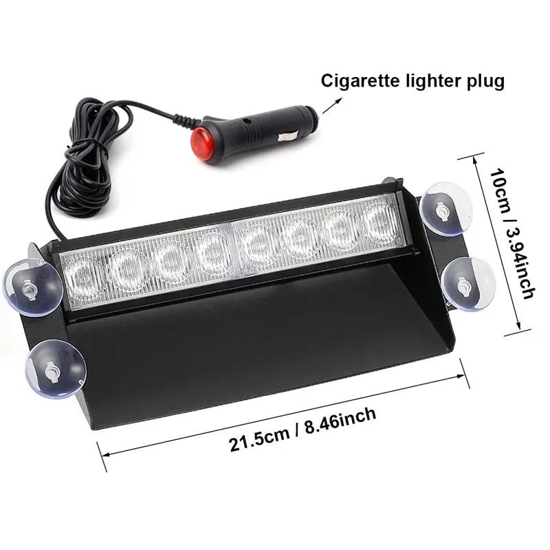 12V Bil Strobelys Blinker Kjøretøy Frontrute Kjørelys Blinker 8 LED Varsellys Rødt Blått Politi Nødslys Blå