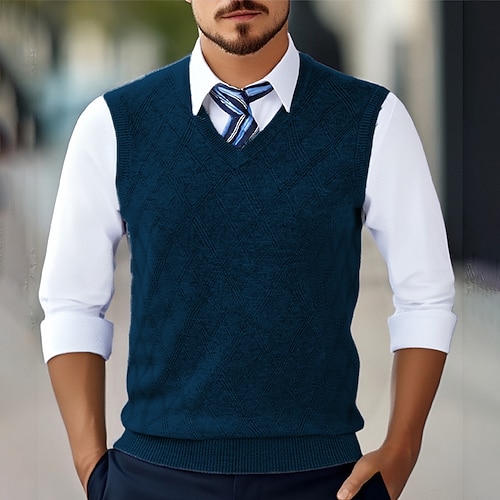 Per uomo Gilet Maglione elegante Maglione Maglione a maglia A Coste Maglia Top Regolari Lavorato a maglia Scollo a V Abbigliamento quotidiano Data Abbigliamento Autunno Inverno Vinaccia Blu marino