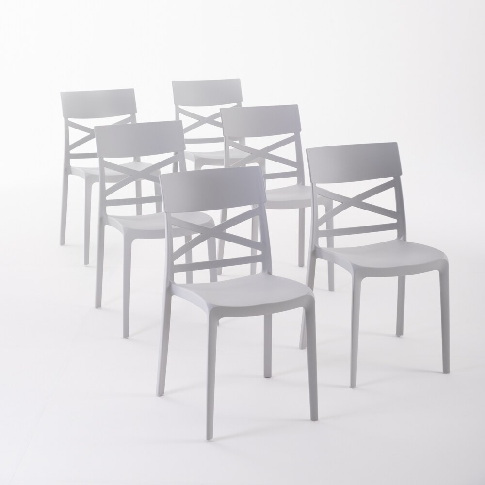 RATTATAN 6er-Set stapelbare Stühle aus Polypropylen mit Glasfasern für Außenbereich und Garten, Bar und Restaurant, Küche modernes Design - MARTINA - Hellgrau