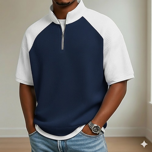 Per uomo Magliette Polo a Nido d'Ape Polo con zip Sport all'Aperto Casuale Colletto Mao Con cerniera Manica Lunga Moda Moderno Tinta unica Testurizzato Lavorato a maglia Primavera Autunno Tutte le