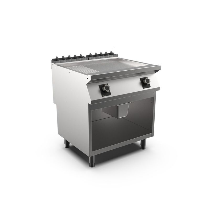 Mareno M1-700 elektrische Grillplatte mit 2/3 glatter und 1/3 gerippter Mattchromplatte, 80cm
