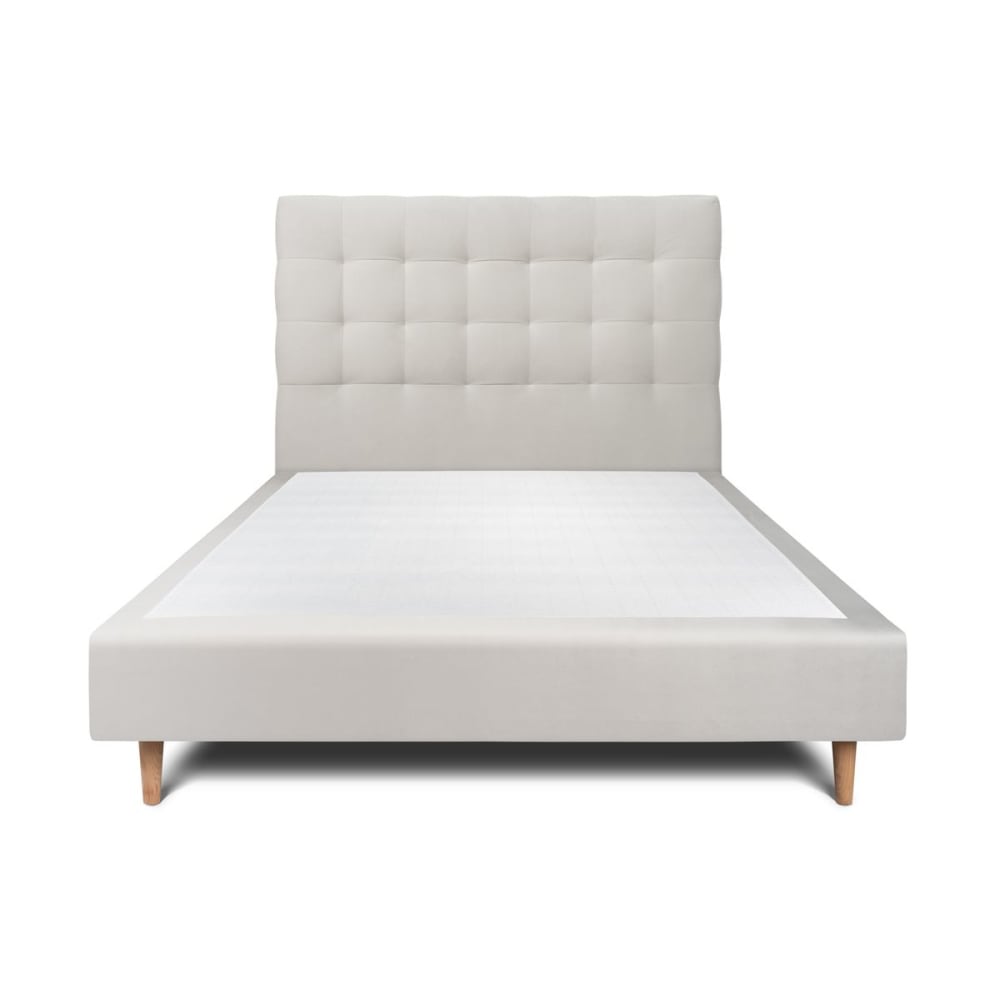 Lit avec tête de lit capitonnée velours et sommier Gris clair 160x200