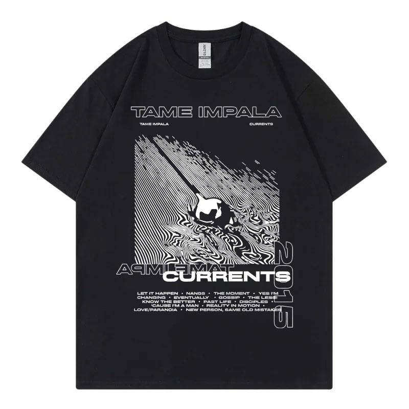 Tame Impala Currents Grafiske T-skjorter Menn Kvinner Hip Hop Rock Kortermet T-skjorte Mote Avslappet 100% Bomull T-skjorter Streetwear cm