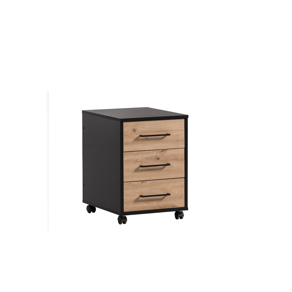 Möbelpartner Rollcontainer Raven | HxBxT 57x40x50cm | 3 Schubladen | Eiche/Schwarz | Büroschrank von PROREGAL