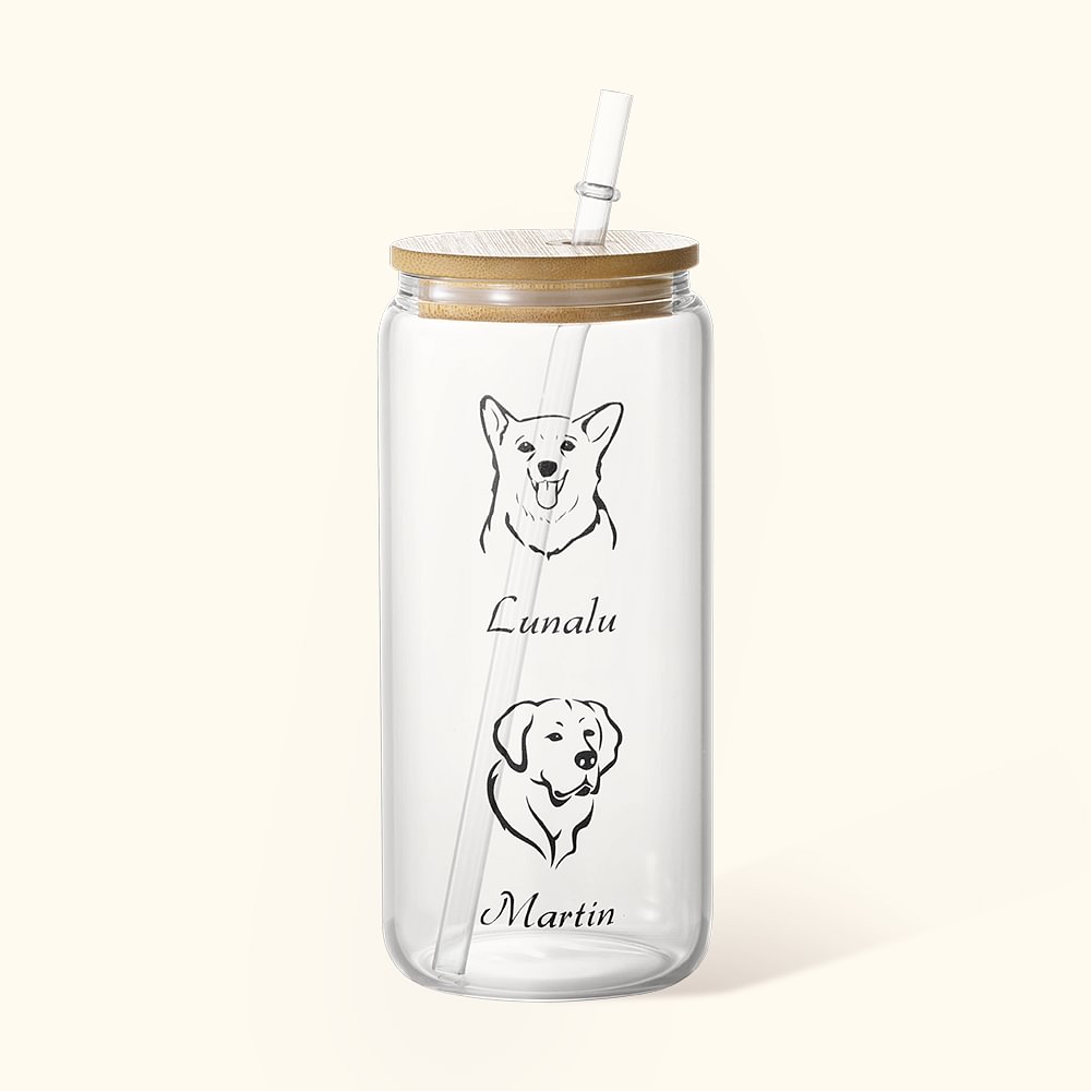 Tazza da caffè personalizzata con ritratto di animale domestico e nome 20 oz Cane Foto Lattina di soda in vetro con coperchio in bambù e cannuccia Ama