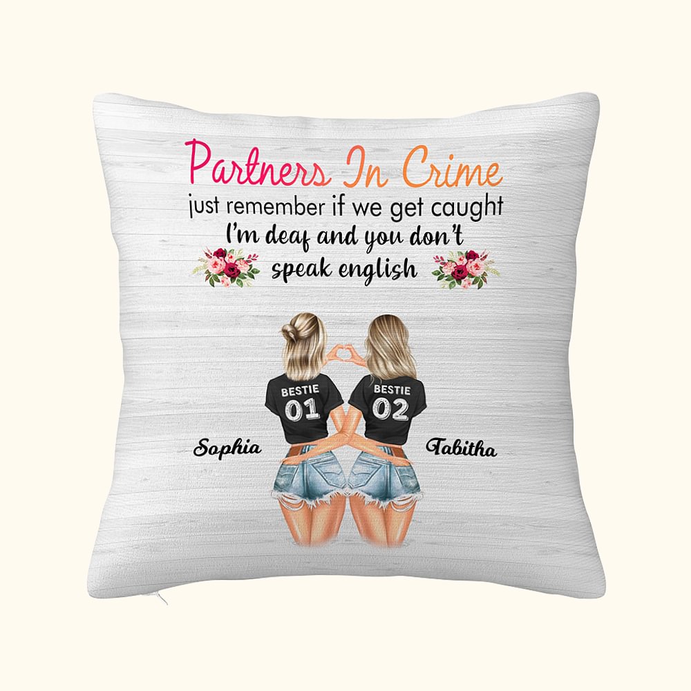 Personnalisé Partners in Crime Just Remember If We Get Caught I'm Deaf and You Don't Speak English Throw Pillow Cover Best Friend Gift Home Decor