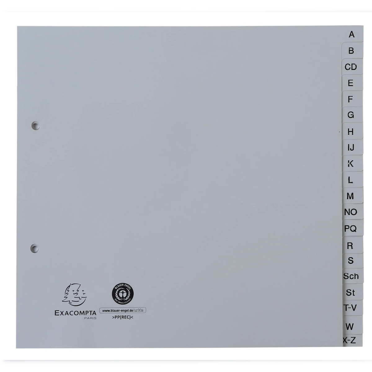 Exacompta 1723B 25x Register 2/3 aus Recycling-PP grau 120µ mit bedruckten Taben A-Z (inkl. Sch, St), 20 Positionen - Grau