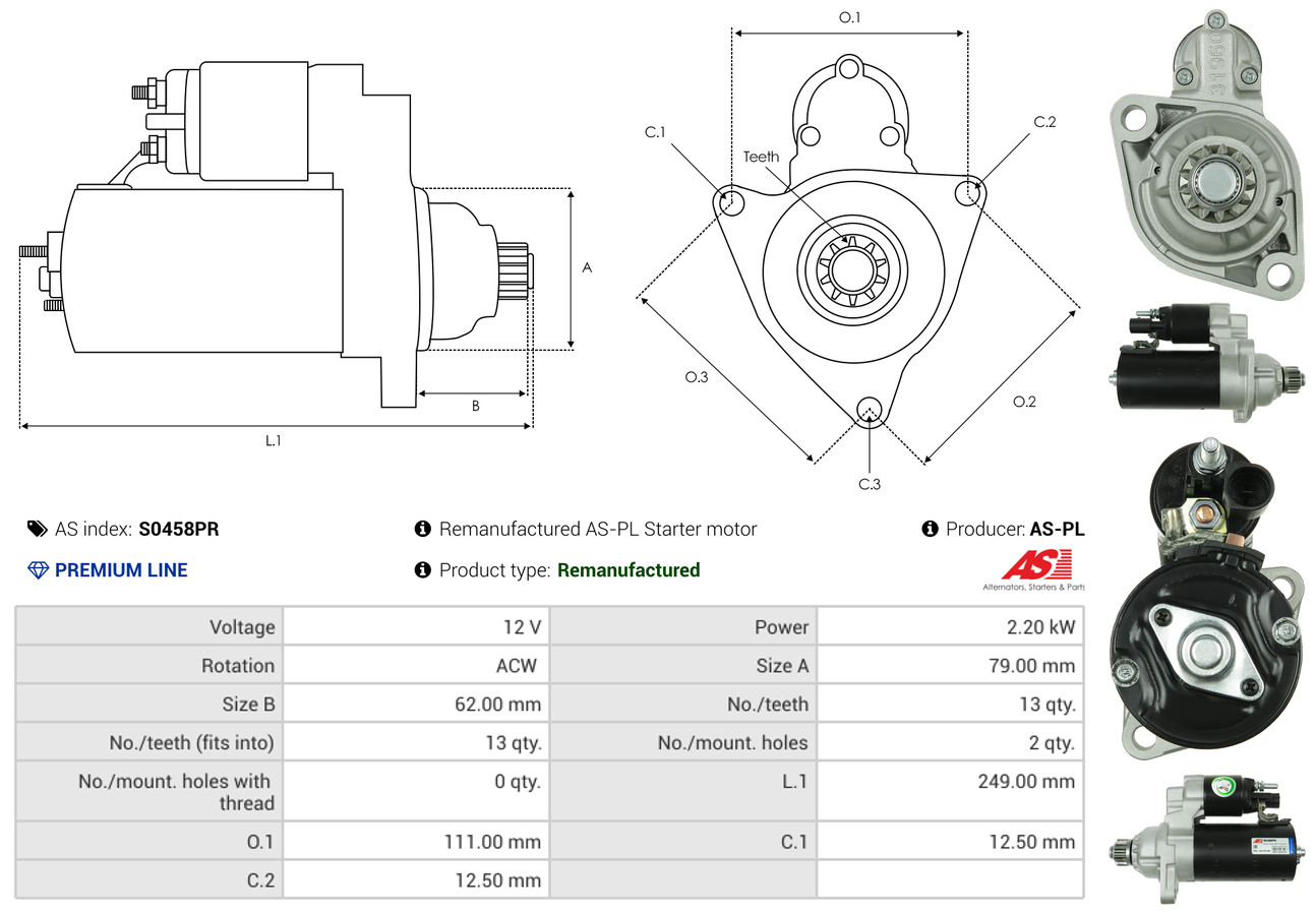 AS-PL Starter S0458PR 12V für VW MAN 2M911024SX 02M911024G 02M911024F