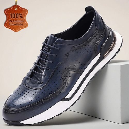 Sneakers da uomo in vera pelle blu navy con design traforato: scarpe sportive premium per uomini attivi e comfort quotidiano