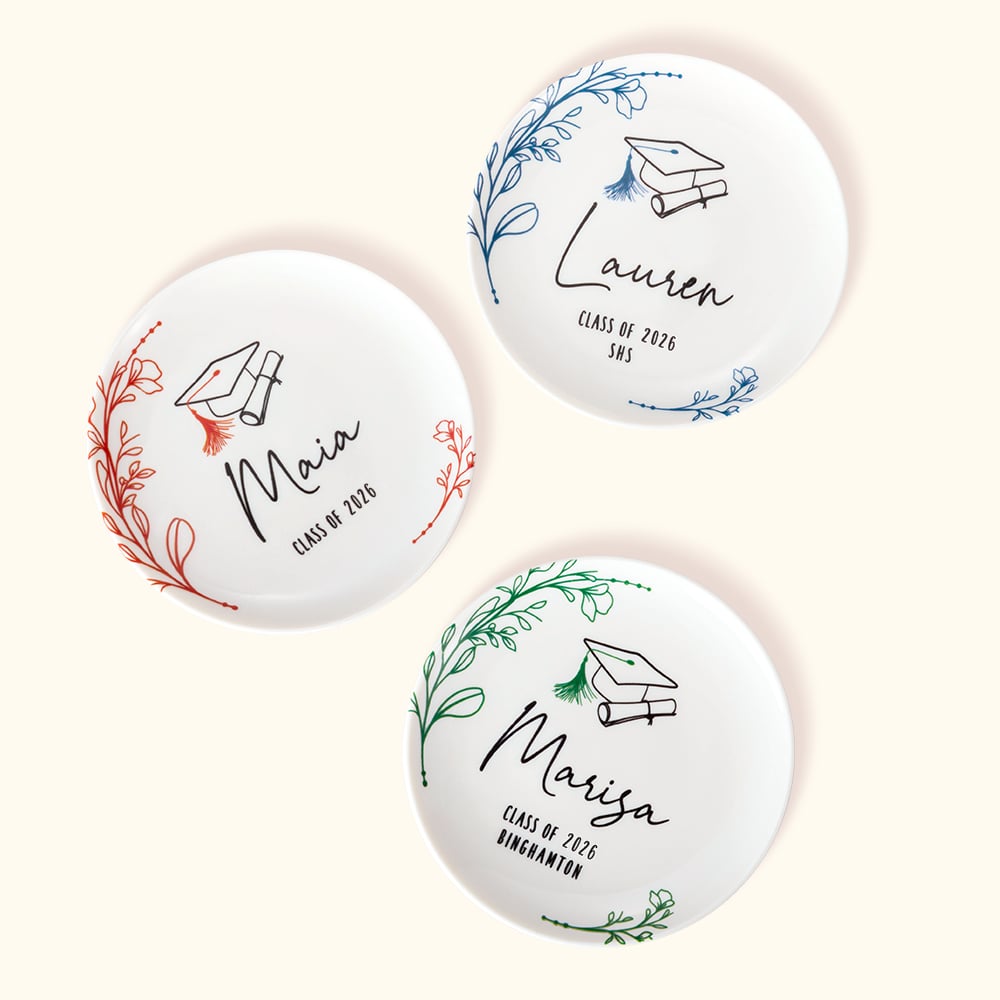 Personalizada Clase de 2026 Gorra de Graduación Plato de cerámica de la joyería con el nombre y el nombre de la escuela Regalo de Graduación para Ella
