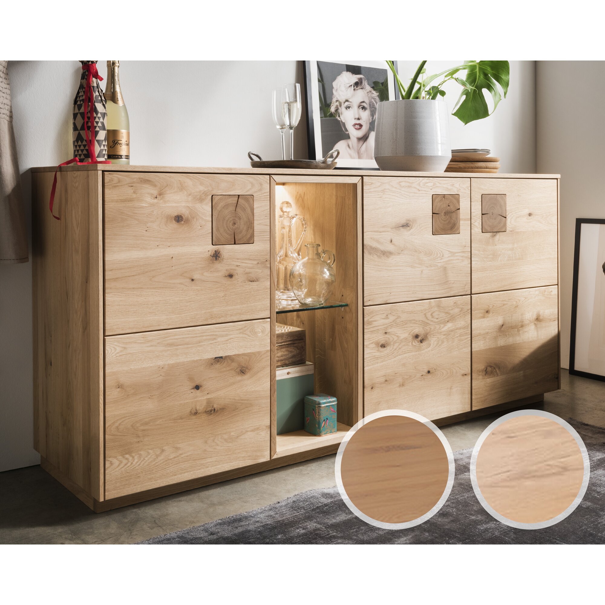 Massivholz »Davos« Sideboard III Wildeiche natur geölt / ohne Beleuchtung