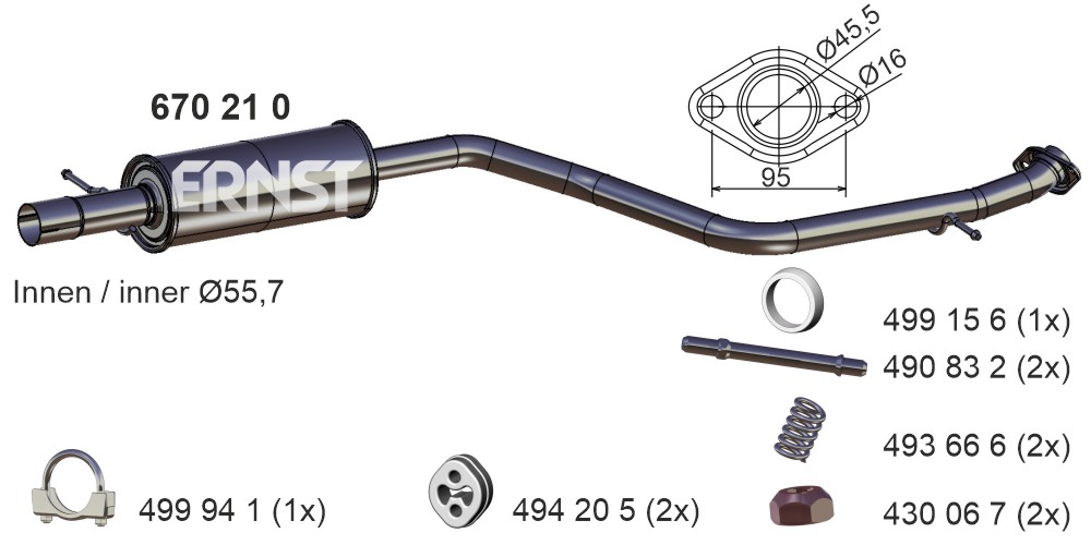 ERNST Mittelschalldämpfer 670210 für MAZDA LFZ2-20-55XA LFZ2-20-55XC LFZ2-20-55XB