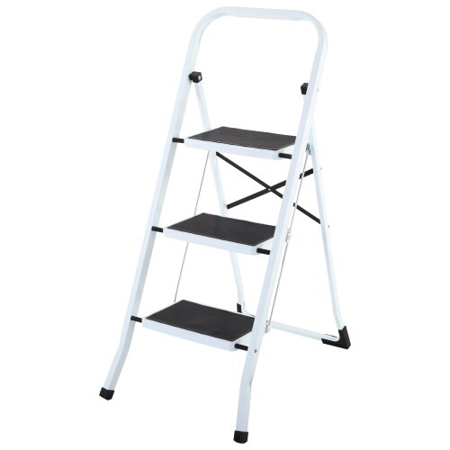 Raburg Stahl-Klapptritt-Leiter, 3 Stufen, Stahl, kompakt klappbar - 67,5 cm hoch, Universal-Leiter, Helfer für den Alltag, Weiß, Raburg Step Medium