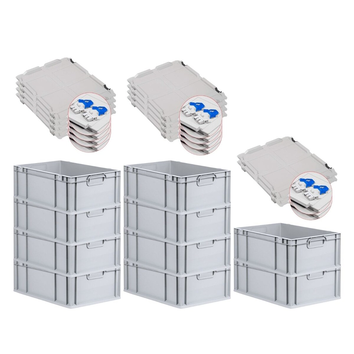PROREGAL 10x Eurobox NextGen Grip mit Scharnierdeckel & blauen Verschlüssen | HxBxT 22x40x60cm | 44 Liter | Griffe geschlossen | Verstärkter Boden