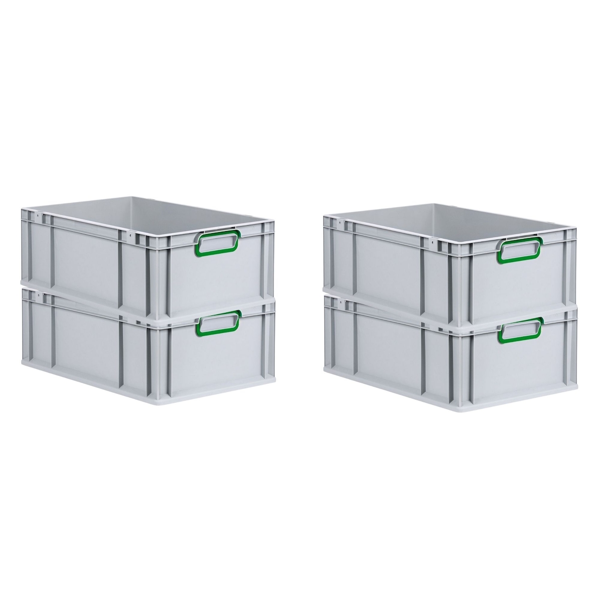 PROREGAL 4x Eurobox NextGen Color | HxBxT 22x40x60cm | 44 Liter | Griffe grün geschlossen | Verstärkter Boden | Eurobehälter