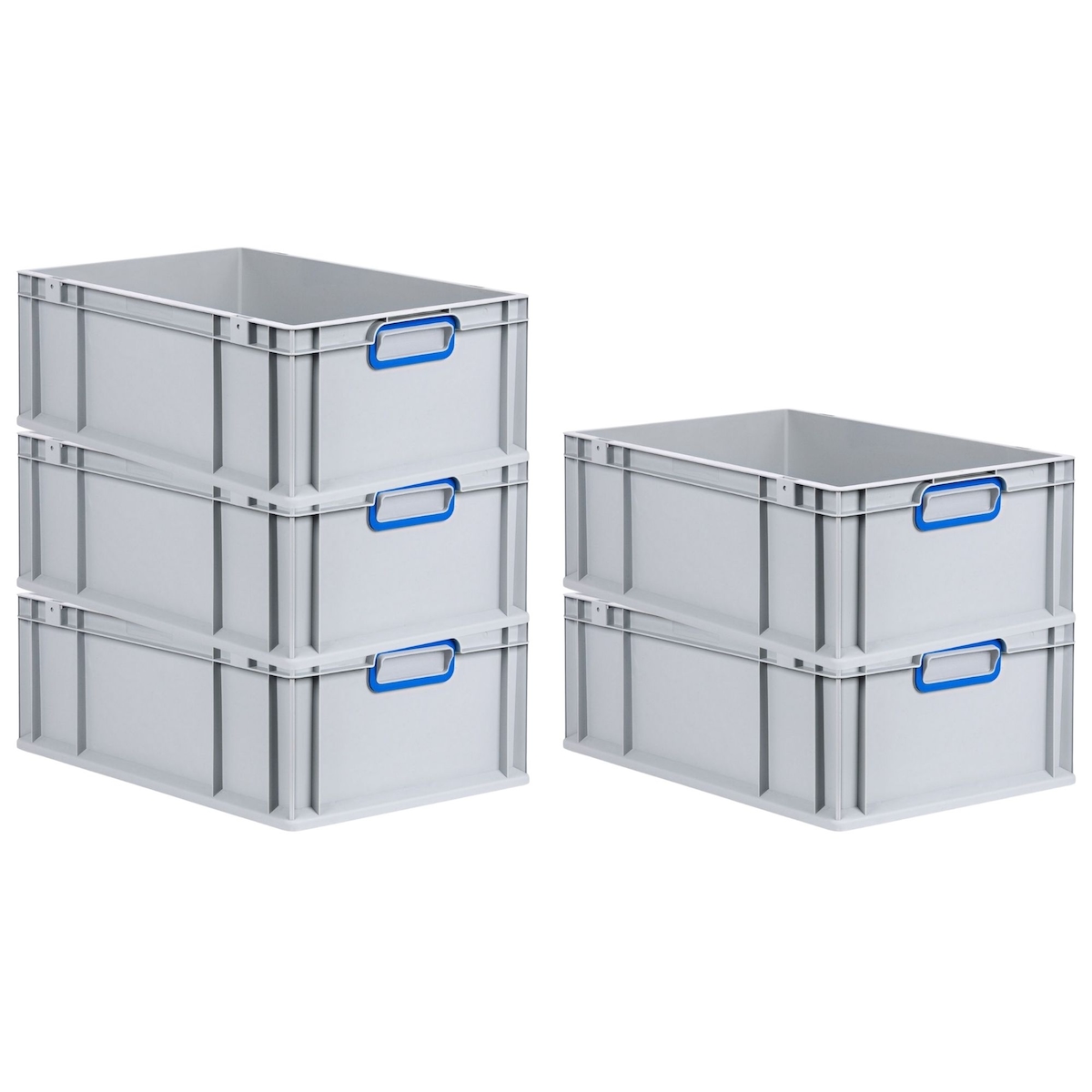 PROREGAL 5x Eurobox NextGen Color | HxBxT 22x40x60cm | 44 Liter | Griffe blau geschlossen | Verstärkter Boden | Eurobehälter