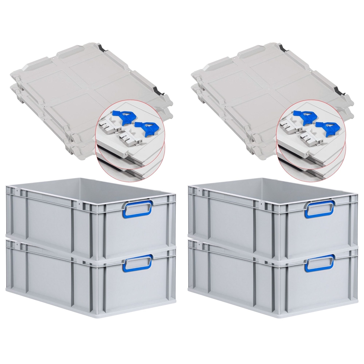 PROREGAL 4x Eurobox NextGen Color mit Scharnierdeckel & Verschlüssen | HxBxT 22x40x60cm | 44 Liter | Griffe blau geschlossen | Verstärkter Boden