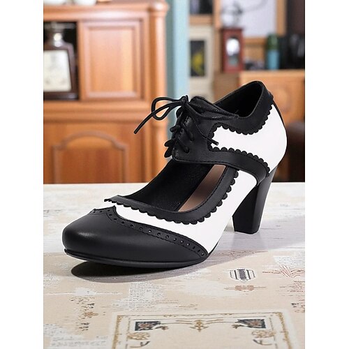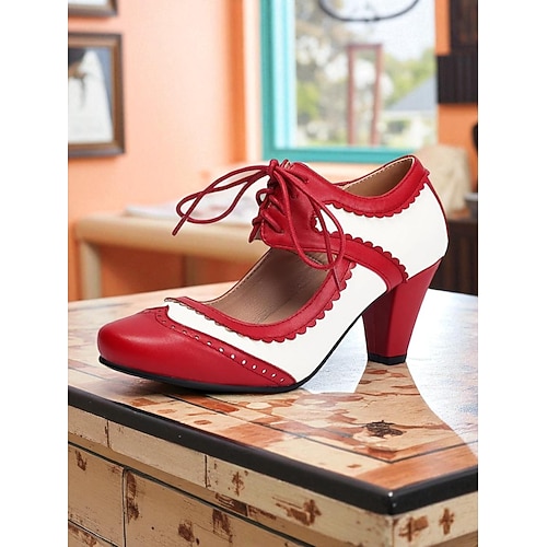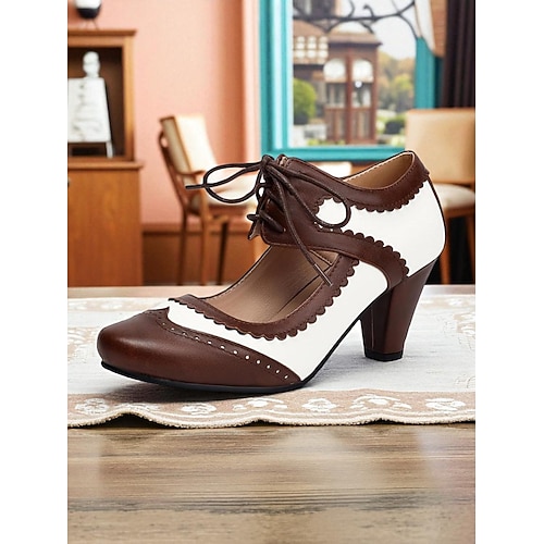 Scarpe col tacco stringate in similpelle viola e bianca da donna, décolleté Mary Jane retrò anni '50 per tea party, cosplay e abbigliamento quotidiano