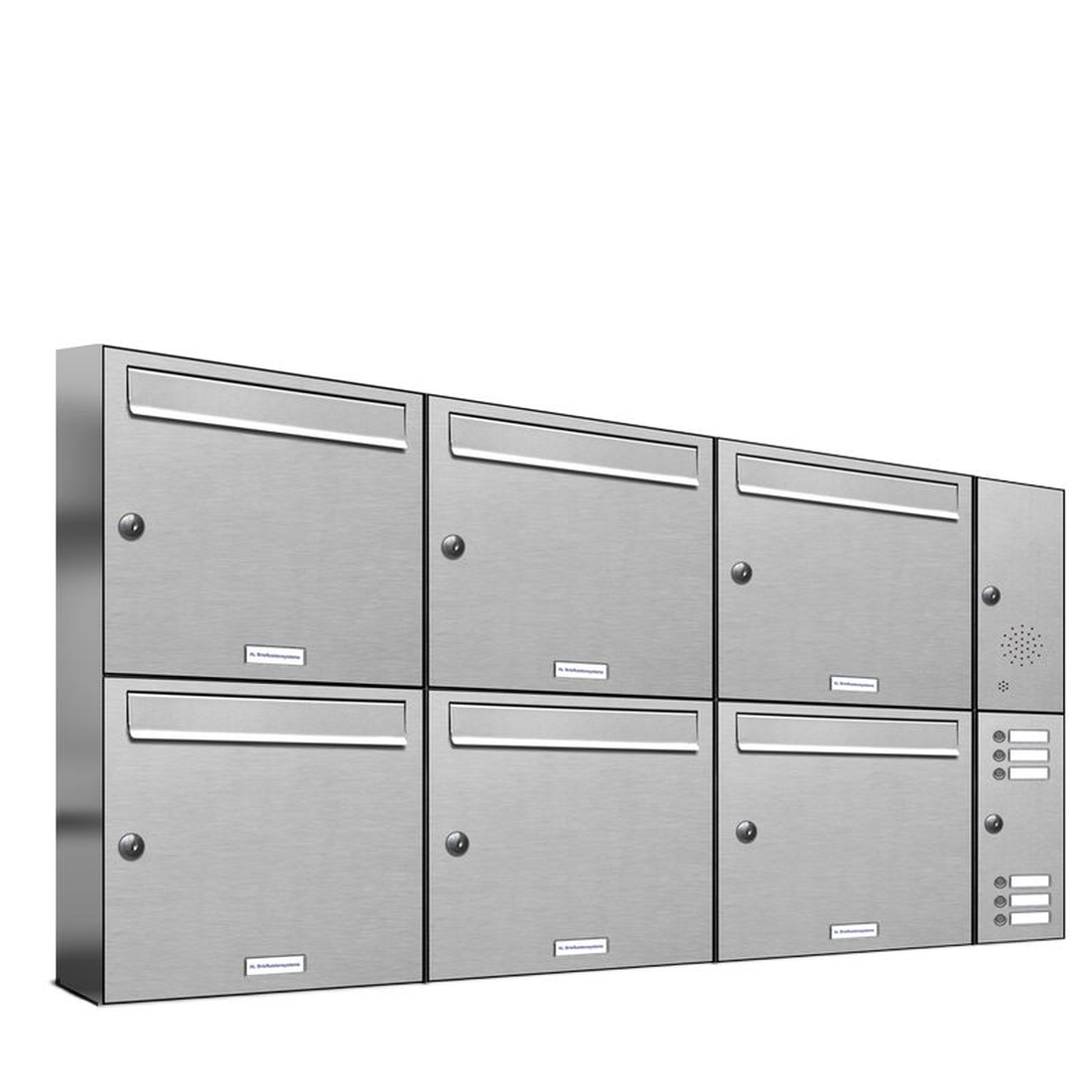 AL Briefkastensysteme 6 Fächer Premium Edelstahl Wand Briefkasten Anlage mit Klingeln, Post A4, modern, robust, wetterfest, Artikelnummer: 331T6EA3KSR