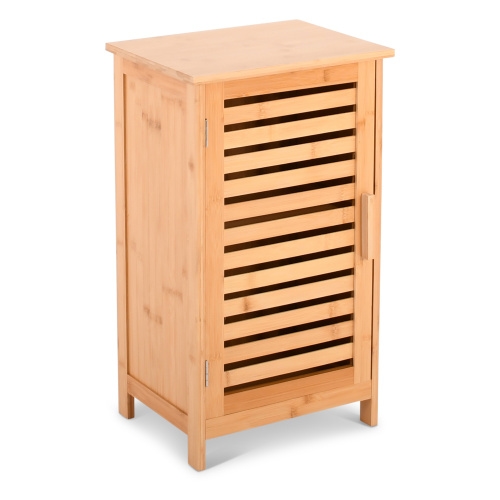 Badezimmerschrank & Aufbewahrungsschrank, Bambus, 2 Fächer, Badschrank aus Holz mit Lamellentür für Bad, Küche oder Flur | Raburg Kivo