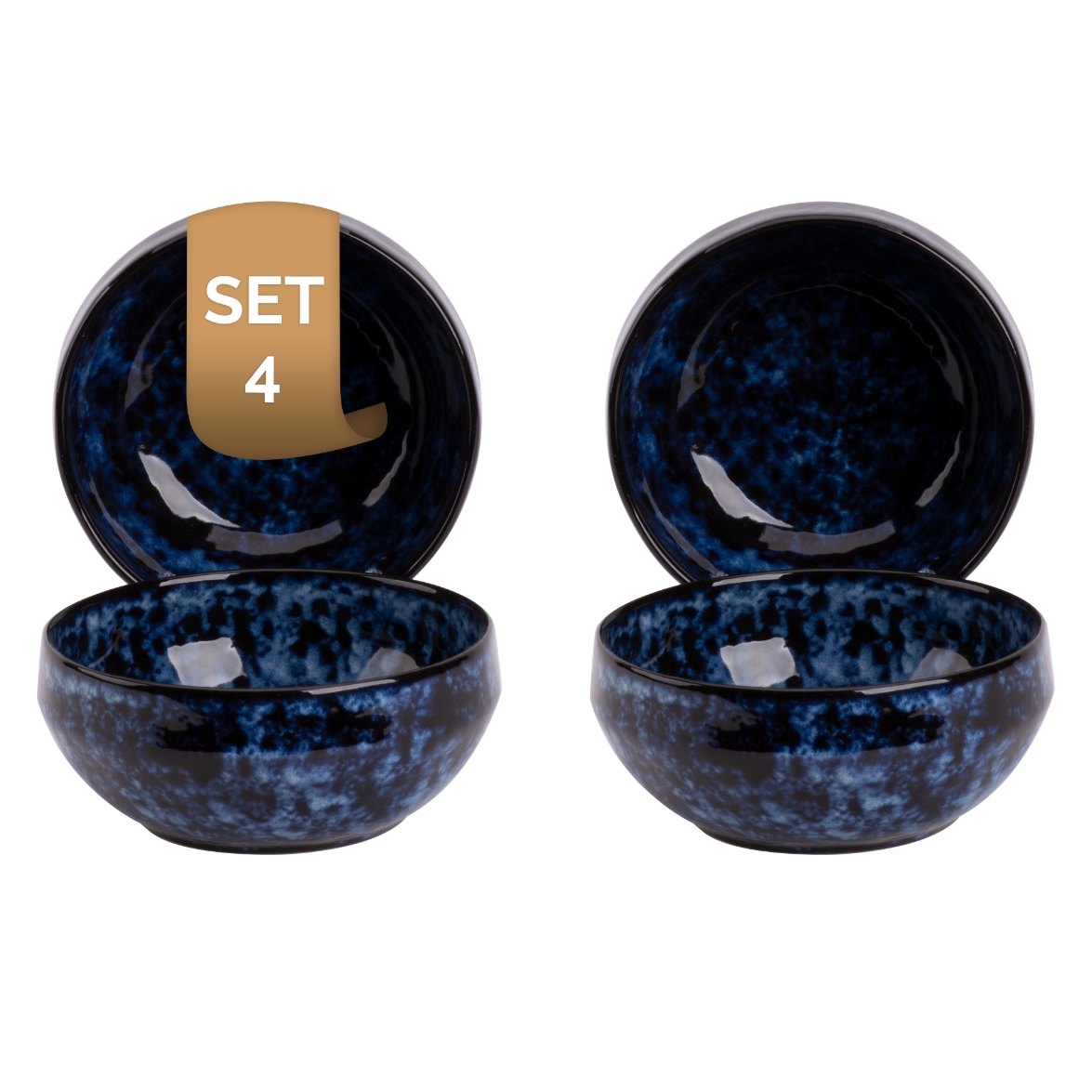 4 x palmer Bama Blue Schale, Steingut, 0,65 Liter, Ø 15 cm, spülmaschinenfest, blau schwarz weiß gesprenkelt glänzend