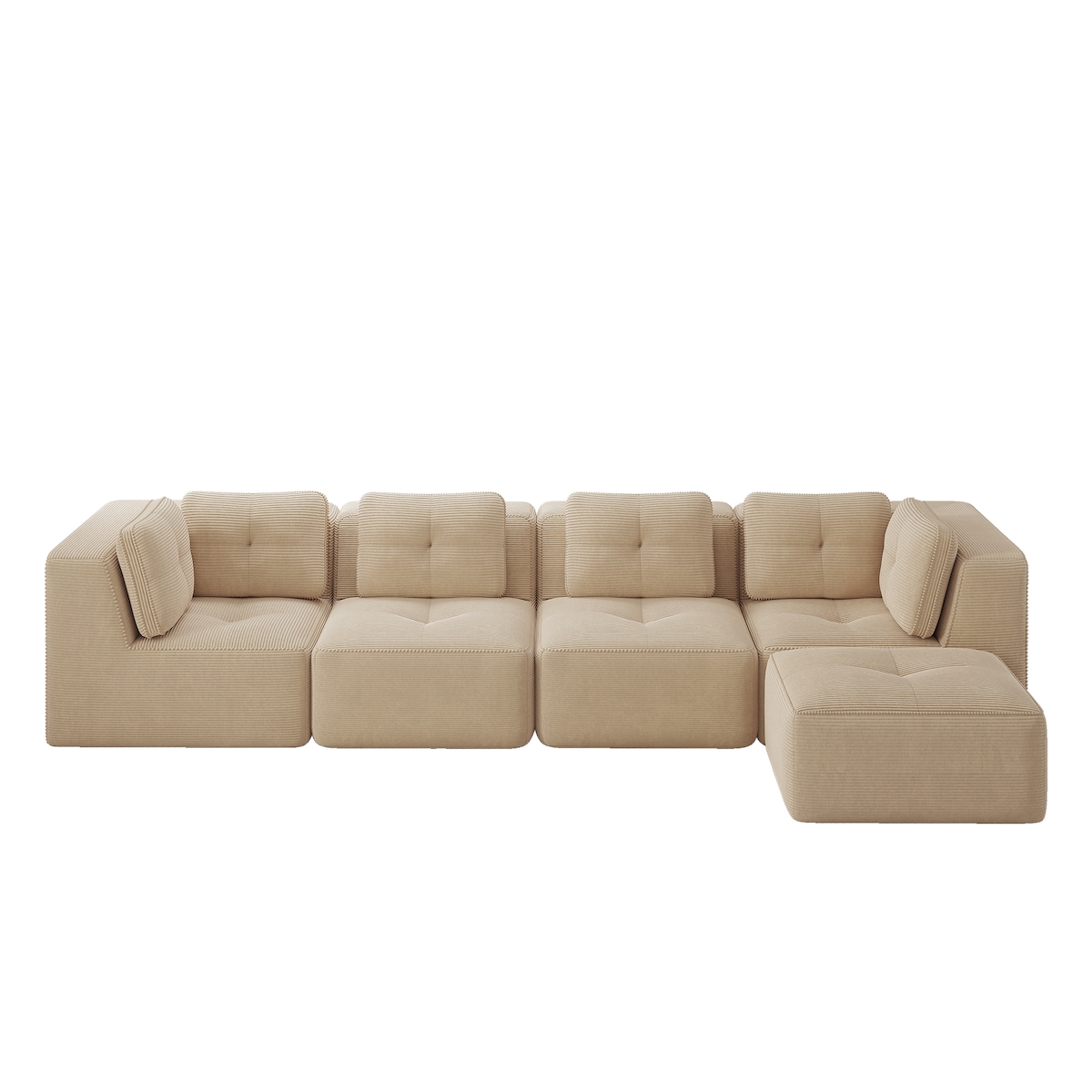 Merax 4-Sitzer Modulares Sofa mit Hocker, Cloud Sofa Cord rahmenlos, Lounge Sofa bodennah, mit breiten Armlehnen, Beige