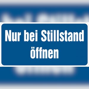 Hinweisschild, Nur bei Stillstand öffnen, Folie selbstklebend, 100 x 200 mm - 200x100 mm Folie selbstklebend
