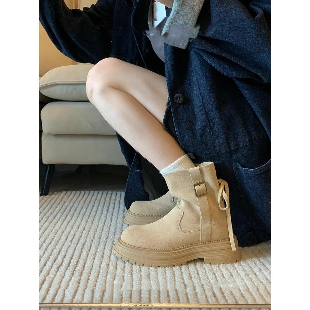 Platform Martin Boots Women's Coarse Heel Short Boots Skinny Boots Vintage Maillard Khaki Back Strap British Boots cm