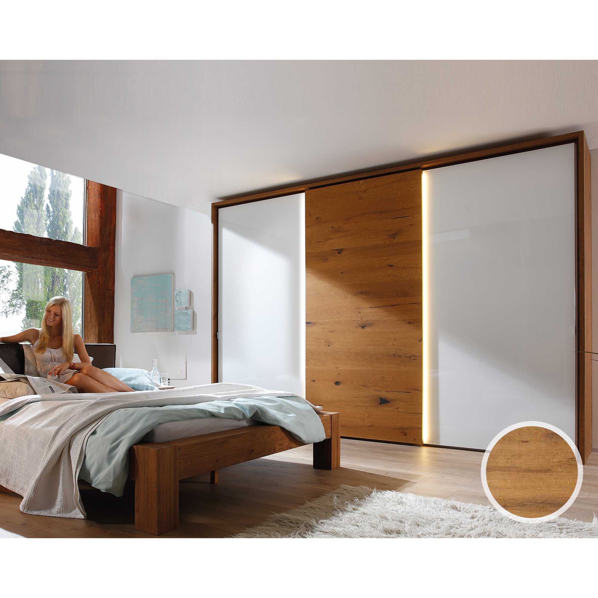 Staud »Calando« Schwebetürenschrank 167 / 222 / Alpin-Weissglas / Wildeiche natur