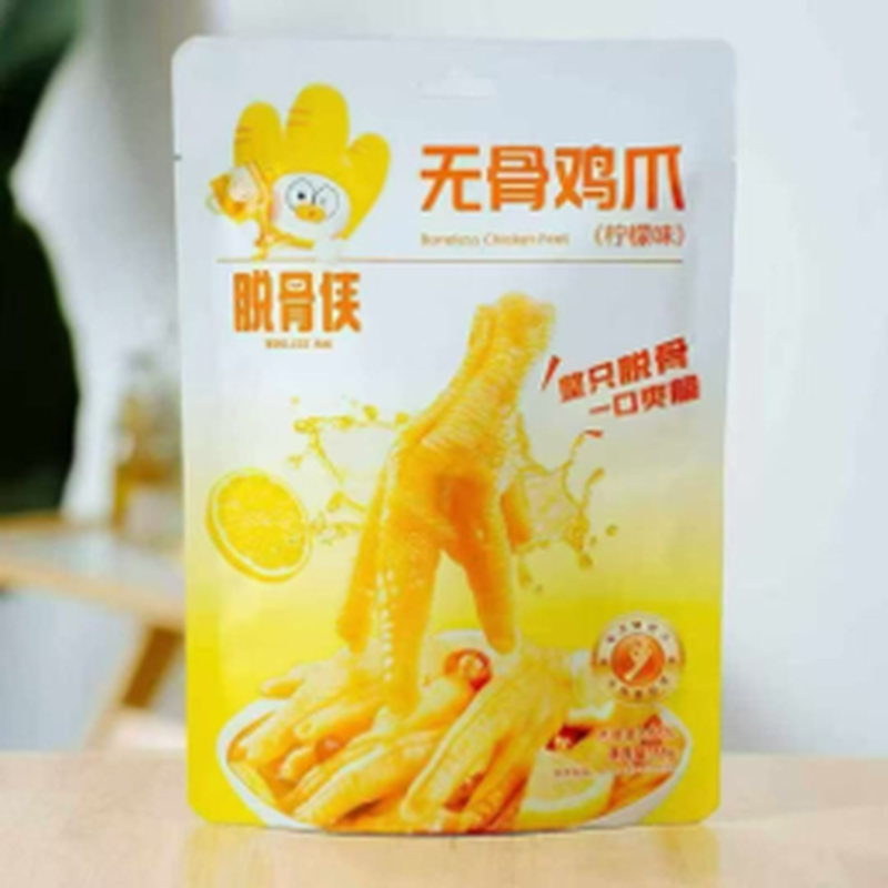 Le titre original inclut la marque 脱骨侠, mais aucune marque cible n’a été fournie, donc la marque d’origine est conservée. 无骨鸡爪 est rendu par “pattes de poulet désossées”, formulation idiomatique en e-commerce. 柠檬 est traduit par “citron” pour indiquer la saveur. 78G est normalisé en “78 g” selon l’usage typographique français. Le pluriel est utilisé pour “pattes” car le produit est un assortiment.
