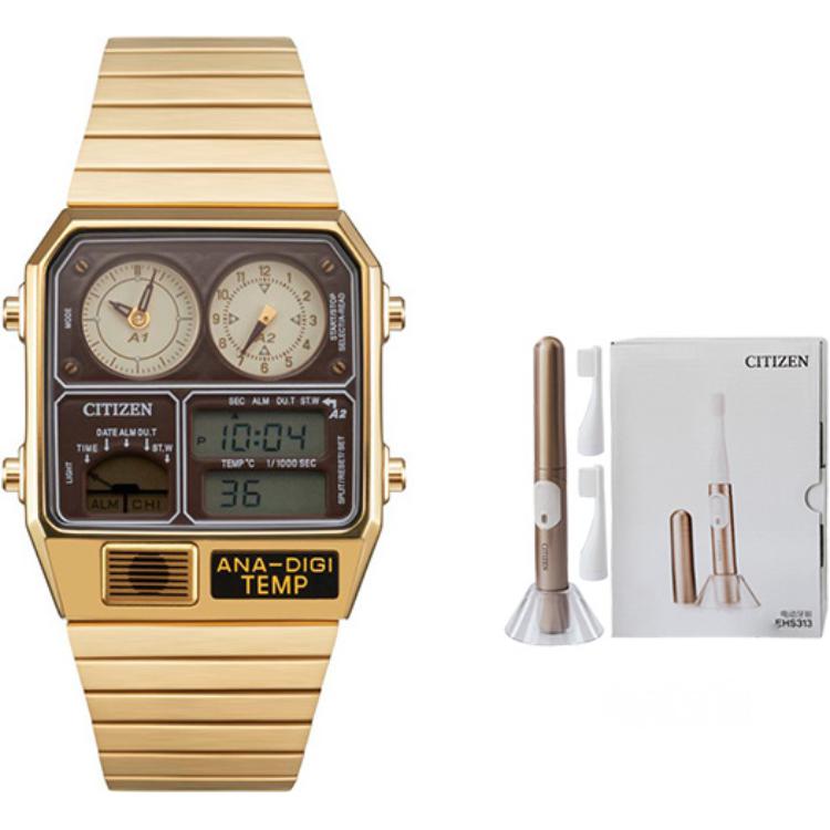 CITIZEN Eco Drive Co branded Collection Quartz Uurwerk Roestvrijstalen Band Horloge Unisex Gouden Wijzerplaat JG2103-72XD