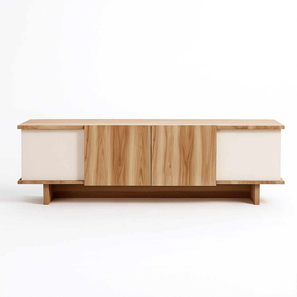 Mobile TV effetto legno chiaro con 3 cassetti e anta bianca