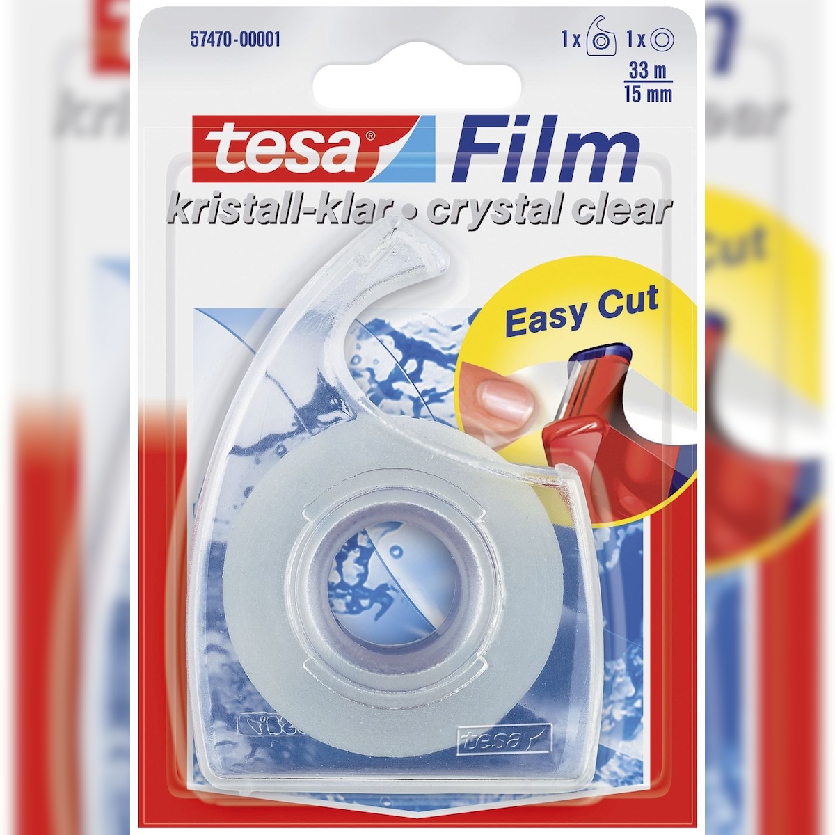 Tesa® 57470-00001 Handabroller Easy Cut® mit 1 Rolle tesafilm® kristall-klar 33m:15mm
