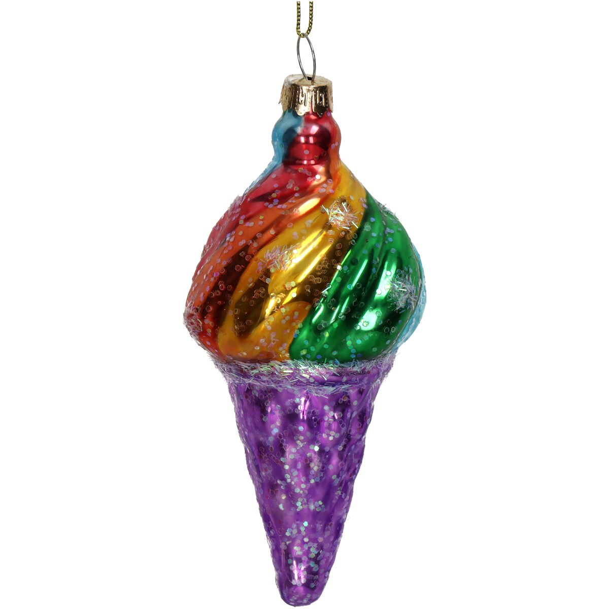 Christbaumschmuck Glas 11,7cm Eis in Waffel Figur Handbemalt mit Glitzer Weihnachtsbaum Anhänger Christbaumanhänger Weihnachtsbaumschmuck Eiscreme
