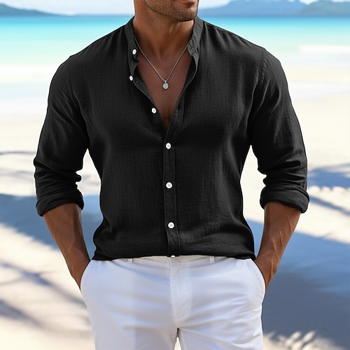 Per uomo Camicia Camicia Estiva Abbigliamento da spiaggia Camicia con Bottoni Semplice Casuale Quotidiano Nero Bianco Rosa Arancione Manica Lunga Senza colletto Estate Primavera Estate Abbigliamento