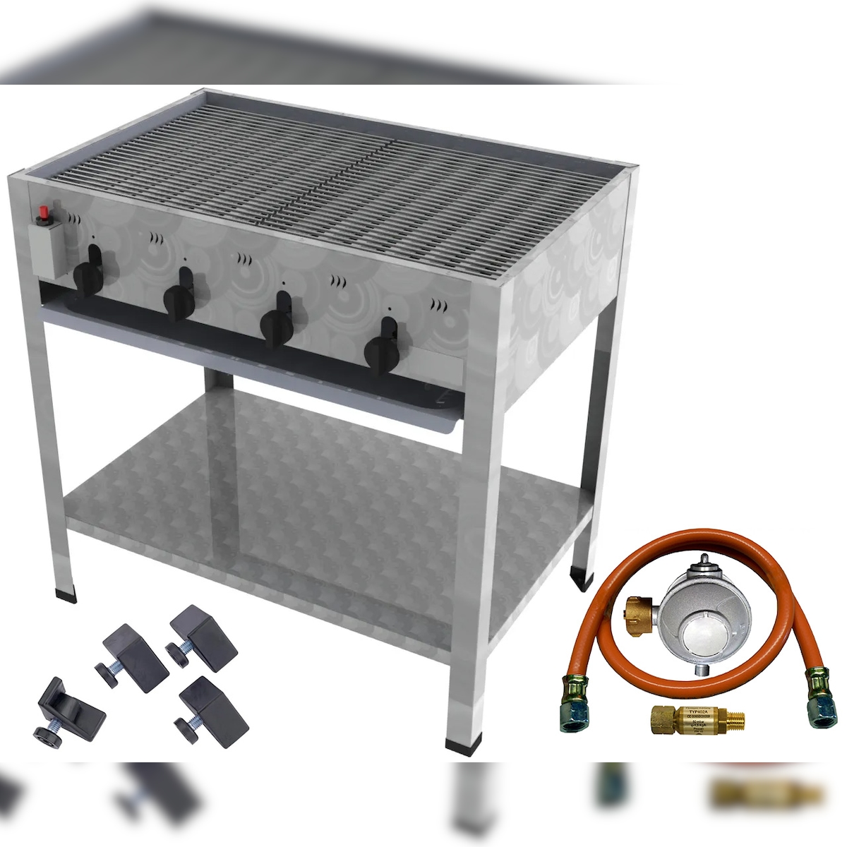 ChattenGlut ChattenTec Professional doppelwandiger Gastrobräter 4-flammig Standgerät 16 kW, Flüssiggas 815x530x830 mm mit Gewerberegler und Rost