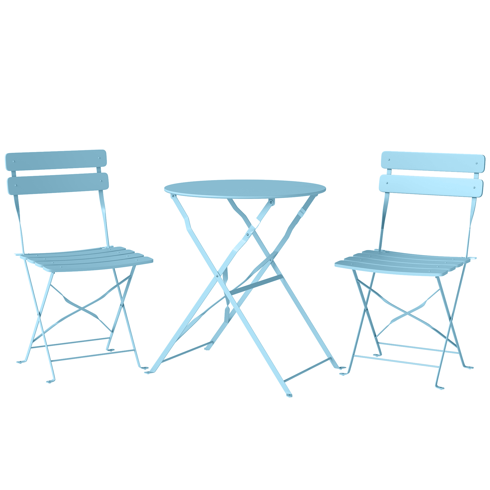 Outsunny Folding Garden Bistro Set, Outdoor Round Bistro Table and Chairs Set 2 with Electrophoresis Metal Frame, Light Blue