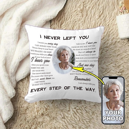 Fodera per Cuscino Memoria Personalizzata Fodera per Cuscino Foto Cuscino Regalo di Simpatia Regali Memoriali Personalizzati Non ti ho mai lasciato