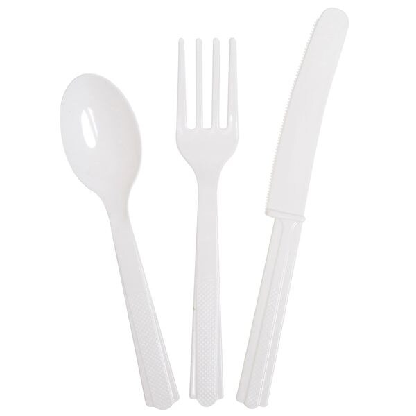 Plastik Besteck weiss 18 tlg. Löffel Messer Gabeln