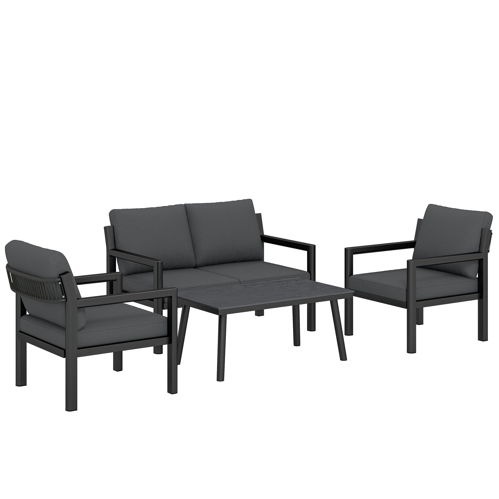 Outsunny 4 Seater Rattan Garden Furniture Set with 2 Armchairs, Loveseat, Coffee Table, Garden Sofa Set with Cushions, Dark Grey