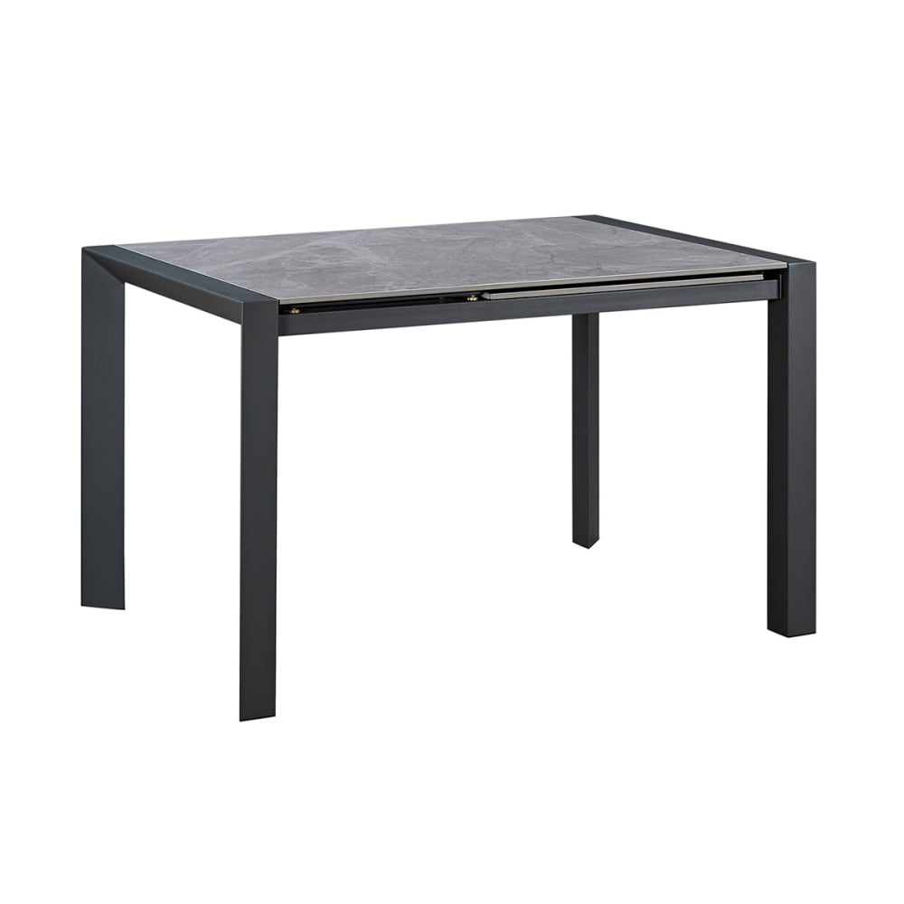Table repas allongeable plateau céramique marbré gris pieds métal gri