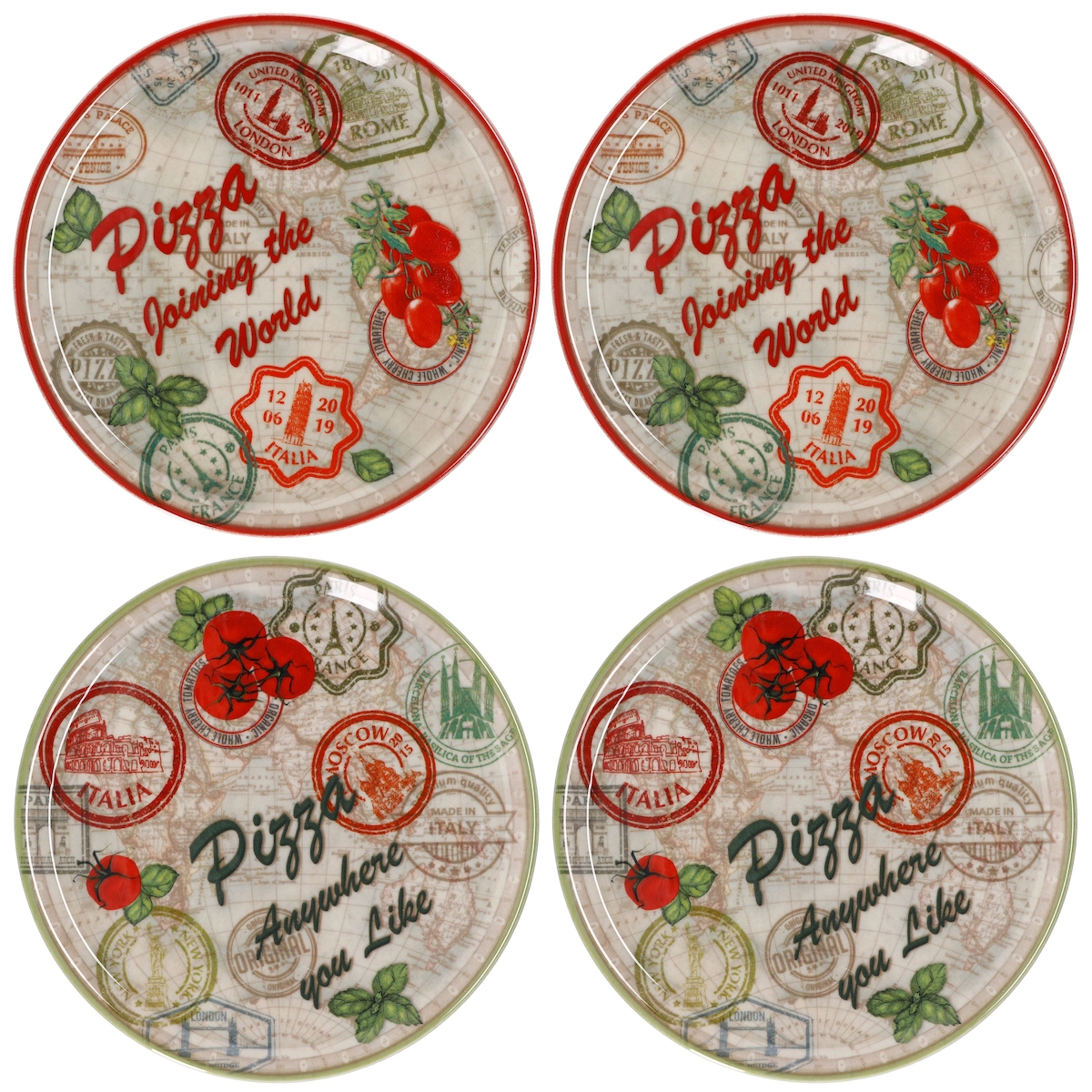 4er Set Pizzateller Charme Red + Charme grün - Rom rot + Moskau grün - 33cm - 04018#ZCHAR + 04018#ZCHAV