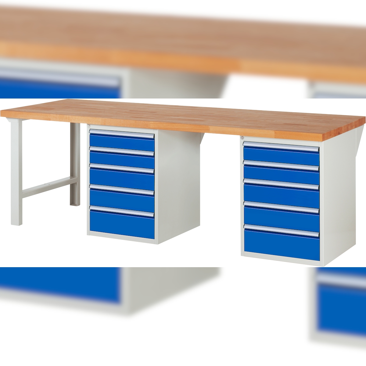 PROREGAL Werkbank Serie 7000 - Modell 7513 | HxBxT 84x250x90cm | 10x Schublade | Schubladenmaße 4x120 + 4x150 + 2x180mm